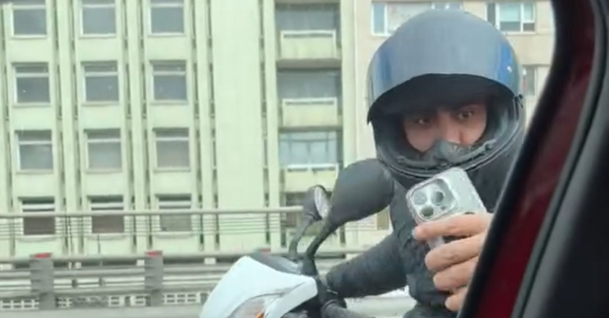 Motosiklet sürücüsü ‘Sen gör, bak camı indir, sıkıntı yok. Camı indir, bak problem yok. Camı indir. Tamam indir camı bir şey diyeceğim. Hadi gel karakola gidelim’ diyerek kadını tehdit etti. Ardından da yaşananları kayıt altına almaya başladı. Daha sonra da, ‘Yol ortasında durdu. Bir şey yaptığım için beni tahrik ediyor. Bilerek yapıyor ortada hiçbir şey yok. Şimdi ben bunu nasıl sosyal medyada yayınlıyorum sen gör’ diyerek tehditlerine devam etti.